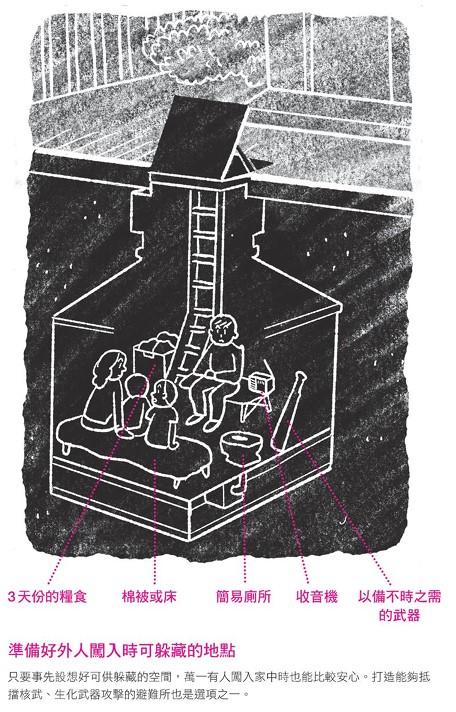 避難地點的選擇,兩本書都建議鄉下,且最好是不要離城市太遠的鄉下、附近有地形可作掩護、不在交通要塞上。