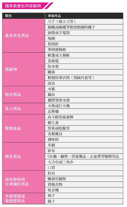 急救包最理想最好準備三組(避難包內一組、車上一組、長期避難所內一組)